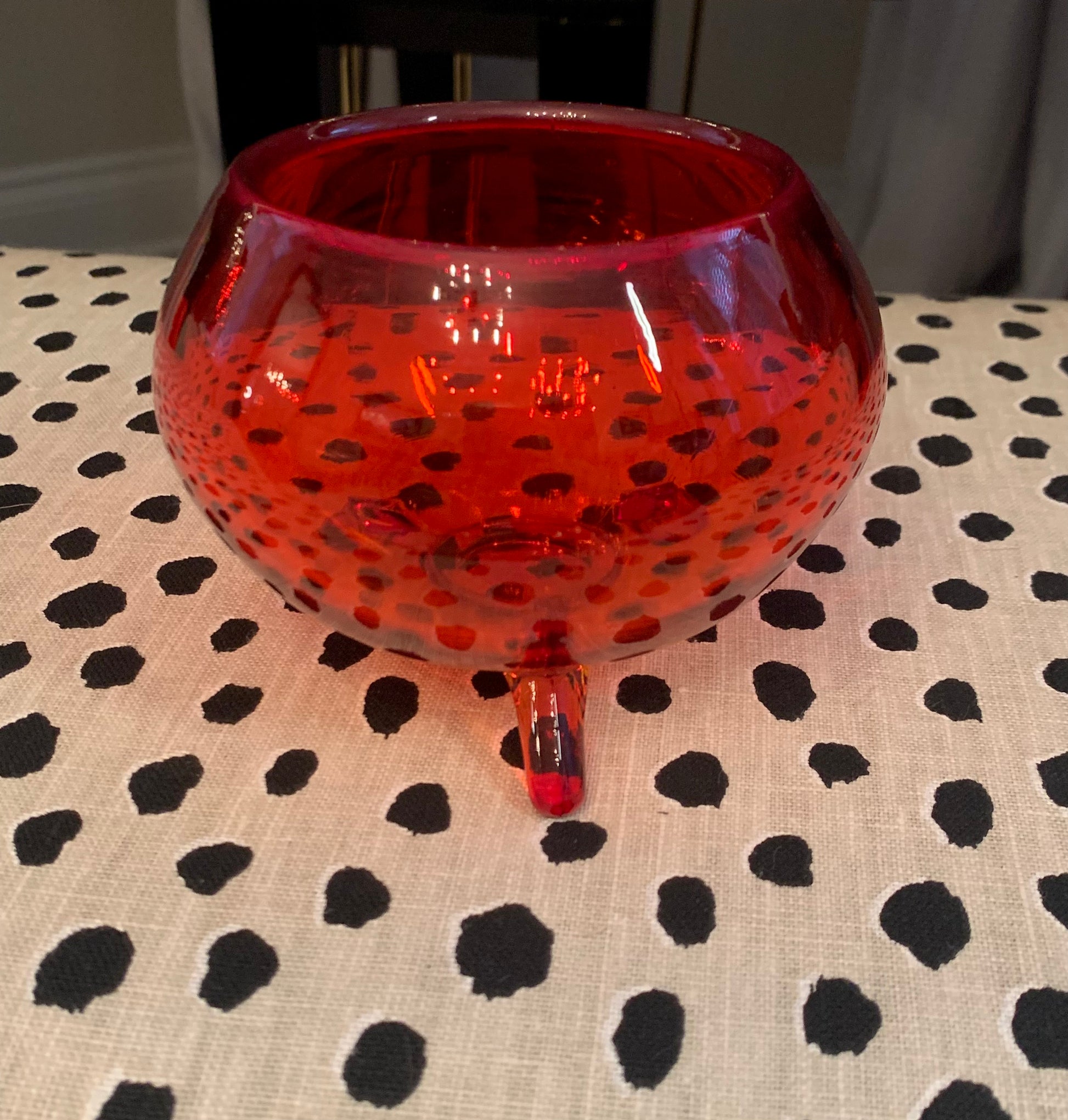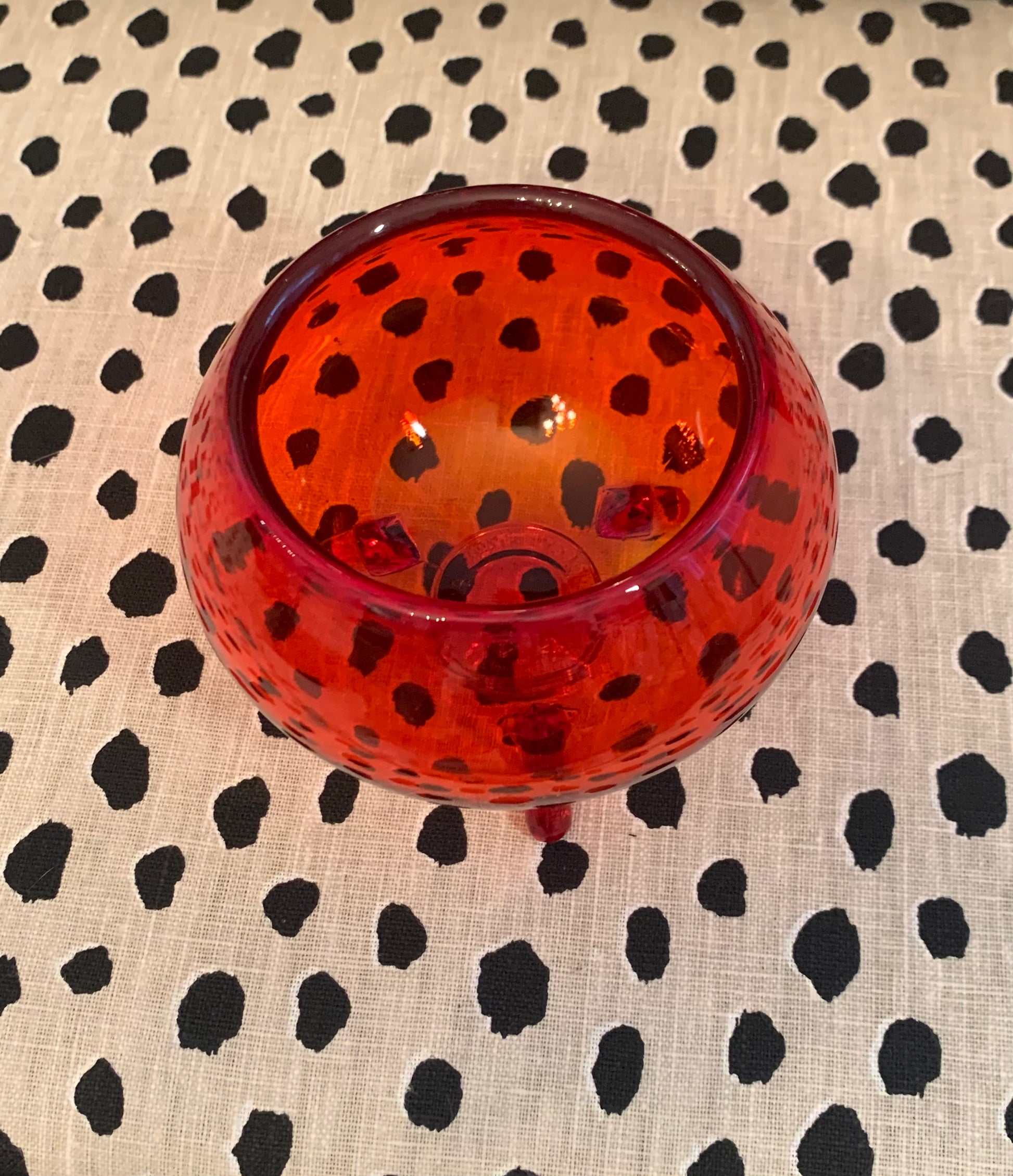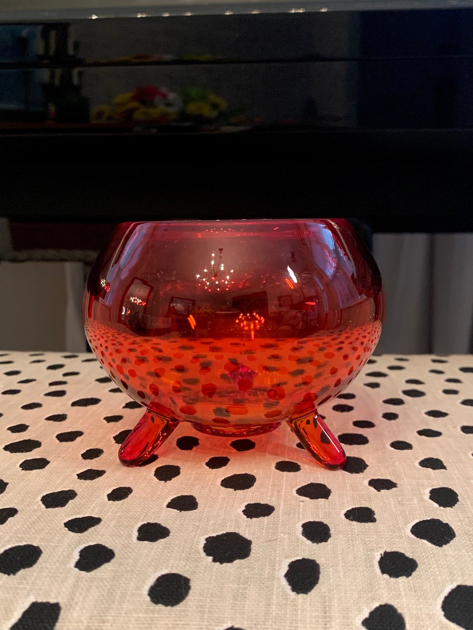 Stunning vintage red glass vase. Can be used as decor by itself or used as a jewelry holder, etc.