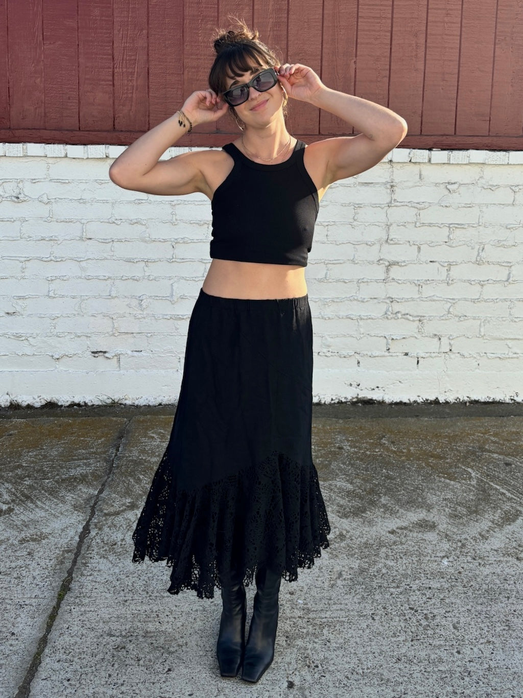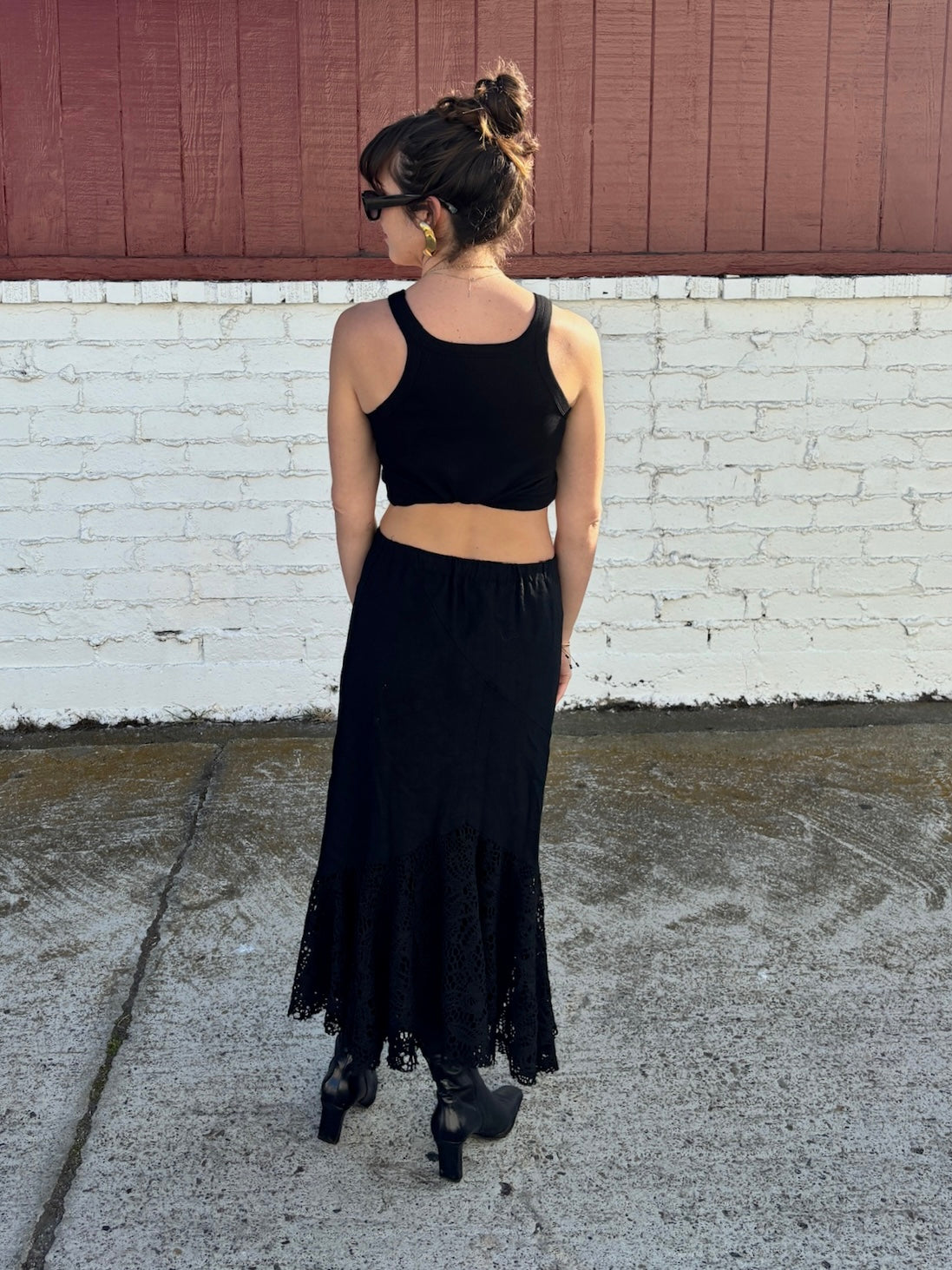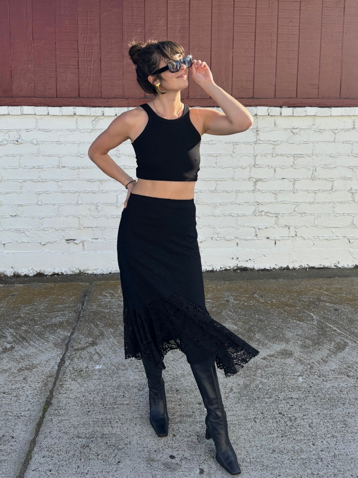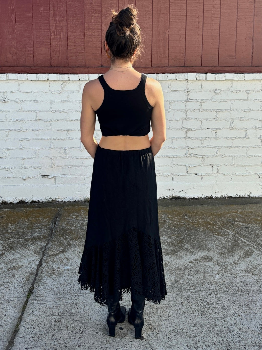 Black Midi Lace Hem Skirt