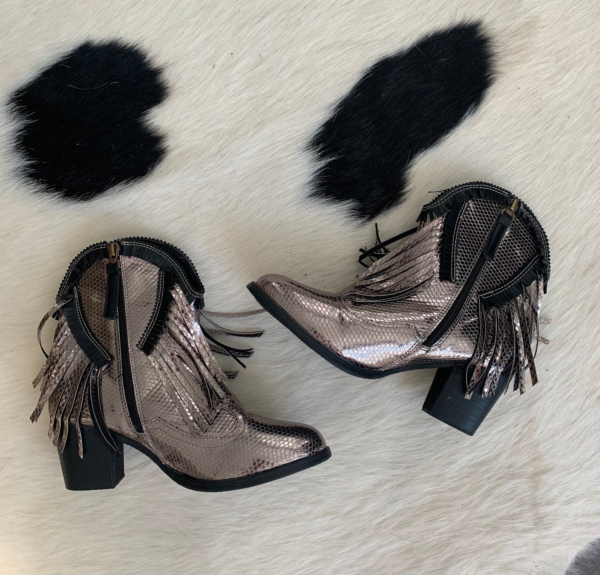The coolest silver fringe booties. Marked as a size 9 and fit true to size.