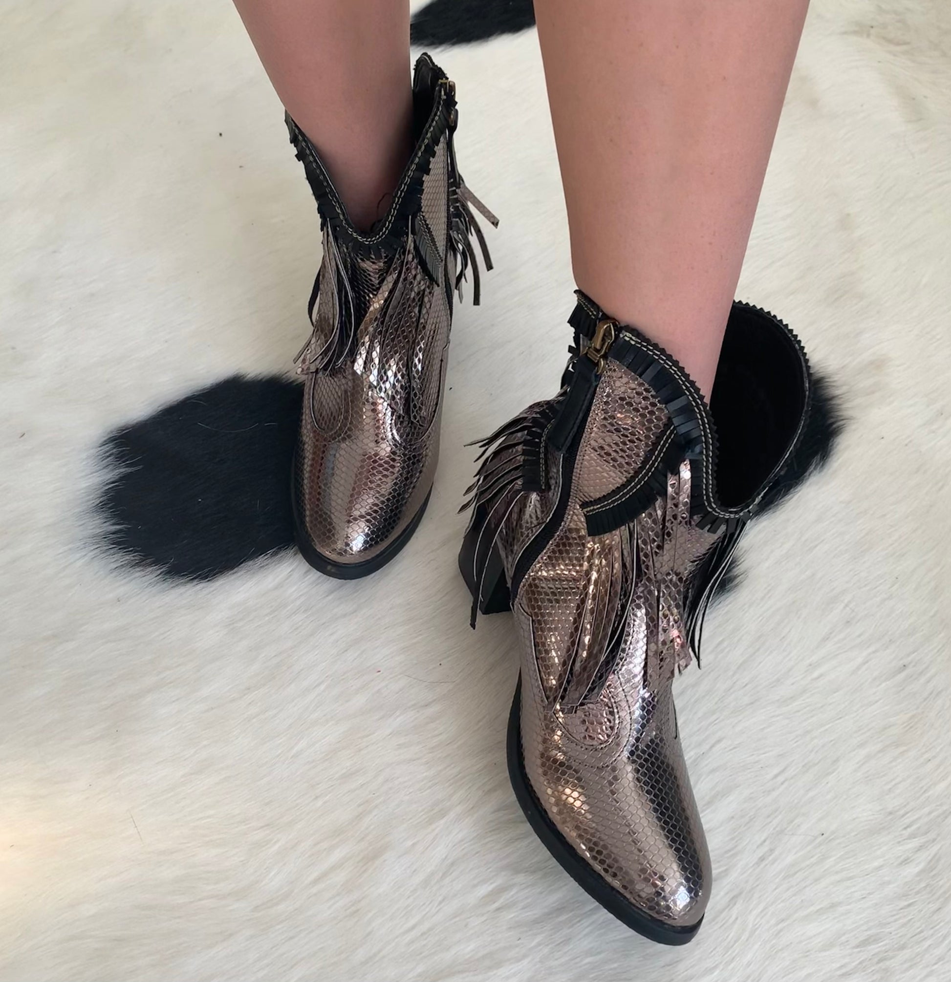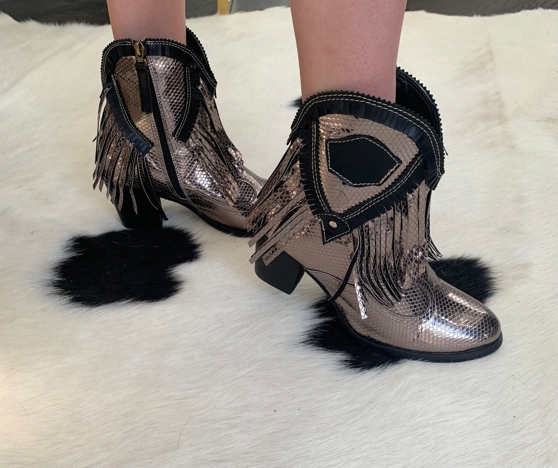 Silver Fringe Booties
