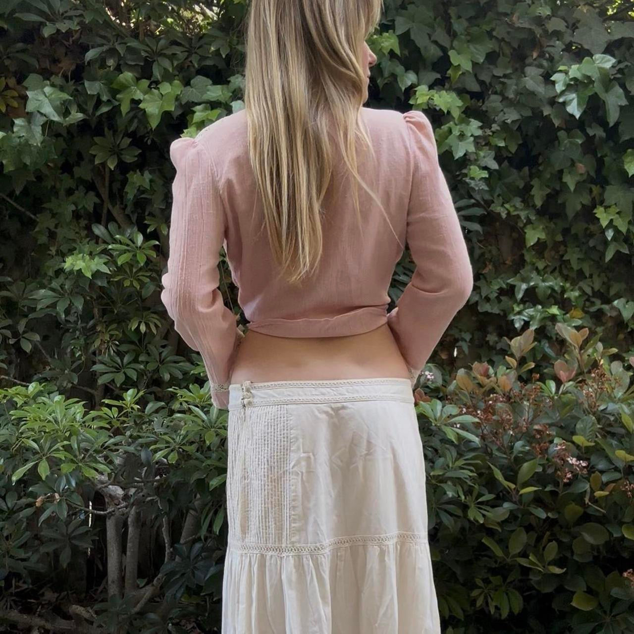 Vintage pink lace cropped tie-front top. So dainty and cute!! Best fit for a size extra small-small.