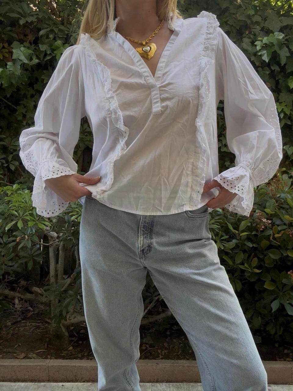 The most stunning white eyelet ruffle sleeve blouse!! Best fit for a size small-large depending on desired fit.