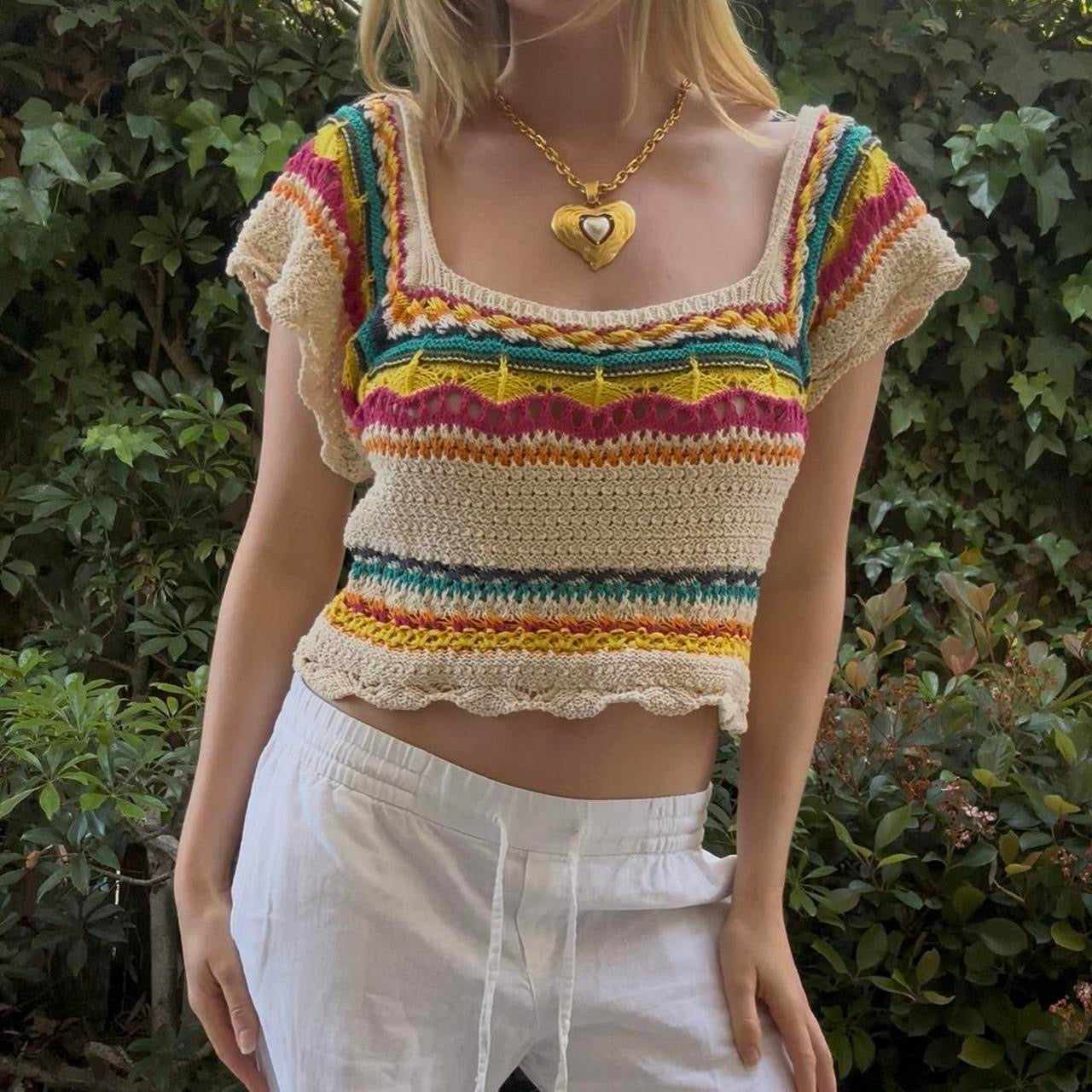 Zara multicolor crochet top. The most perfect top for summer!! Marked a size medium and fits true to size.